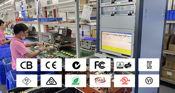 公司產(chǎn)品已通過多項國際和國內(nèi)權(quán)威認證,包括:ISO9001質(zhì)量管理體系認證;中國CCC認證;歐盟CB認證、CE認證GS認證、RoHS認證;美國FCC認證、ETL認證、UL認證(UL1310標(biāo)準、UL60065標(biāo)準、UL60950-1標(biāo)準);日本PSE認證;韓國KC認證、KCC認證;印度BIS認證